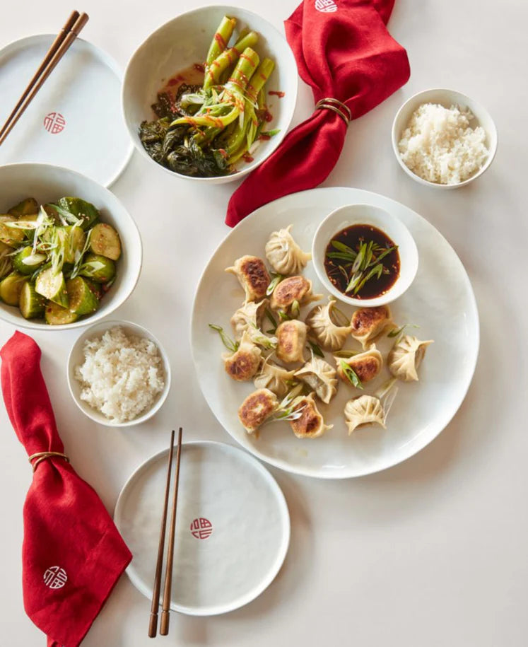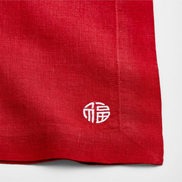 Embroidered in white with the Chinese character for luck, our red Marin napkin celebrates the lunar New Year with elegant simplicity. Made of quality European linen that's exceptionally soft and supple, the red napkin unfolds to a generous 22-inch square, pre-washed for extra softness. Tailored with mitered corners, the linen napkin makes a natural pairing with our Marin dinnerware.