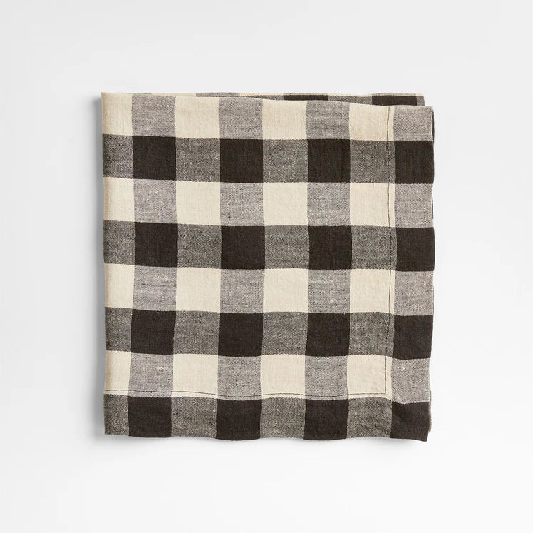 JEHROSE | Marin Black and Natural EUROPEAN FLAX ®-Certified Linen Buffalo Check Napkin